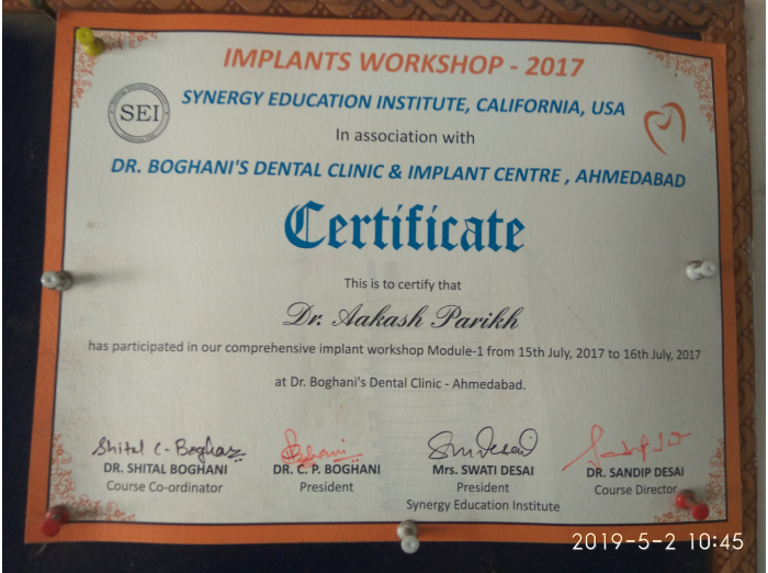 Dr. Aakash S. Parikh is a well known Dentist in Kalal Darwaja, Godhra and has an experience of 8 years in this field. Dr. Aakash S. Parikh practices at Shreeji Dental Clinic And Implant Center in Kalal Darwaja, Godhra.